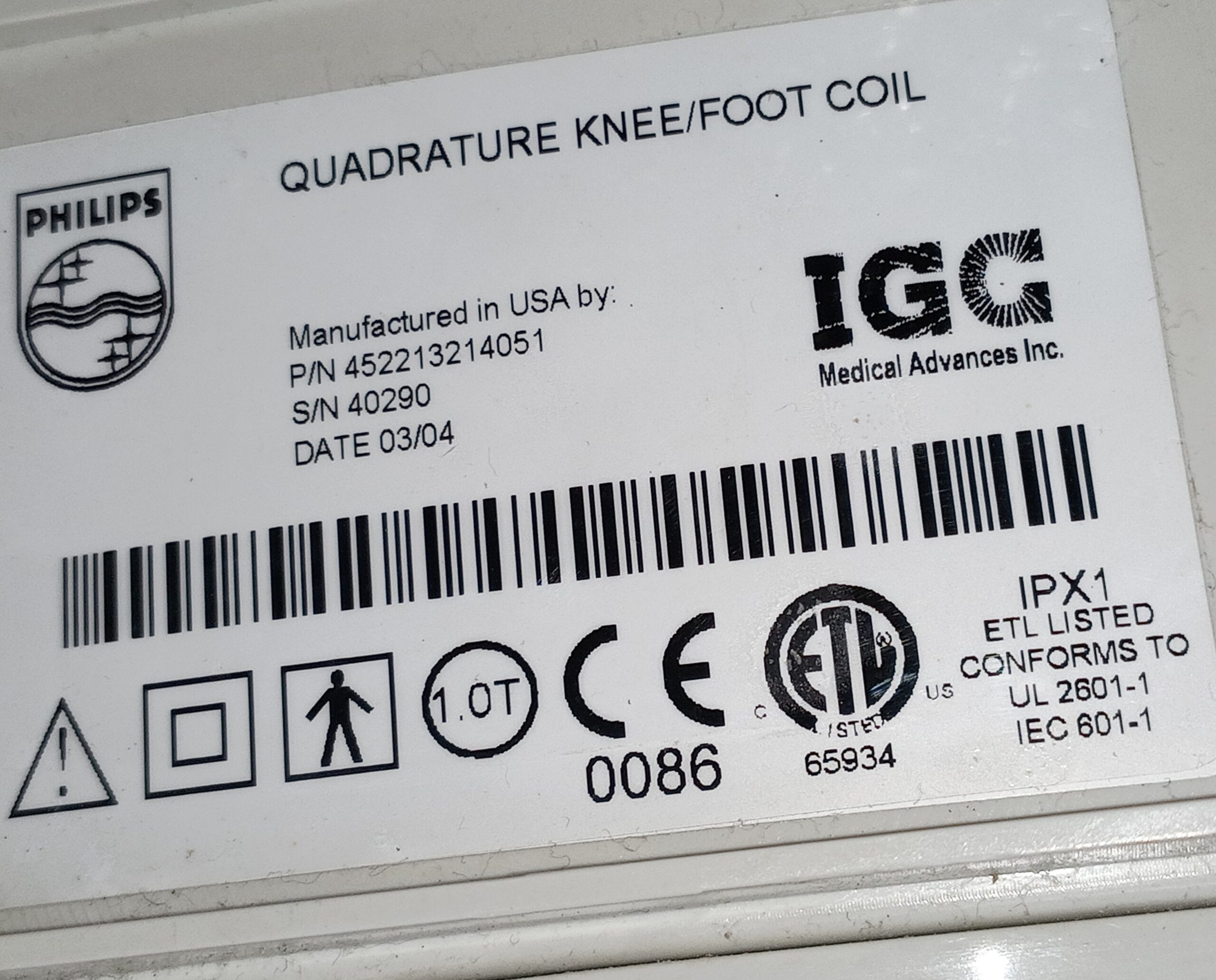 Part#: 452213214051 PHILIPS – MRI – Quadrature Knee/Foot Coil