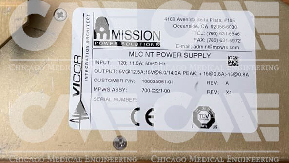 Vicor Part#: 700-0221-00 Rev. X4 Varian Linac MLC Power Supply PN 100035081-02
